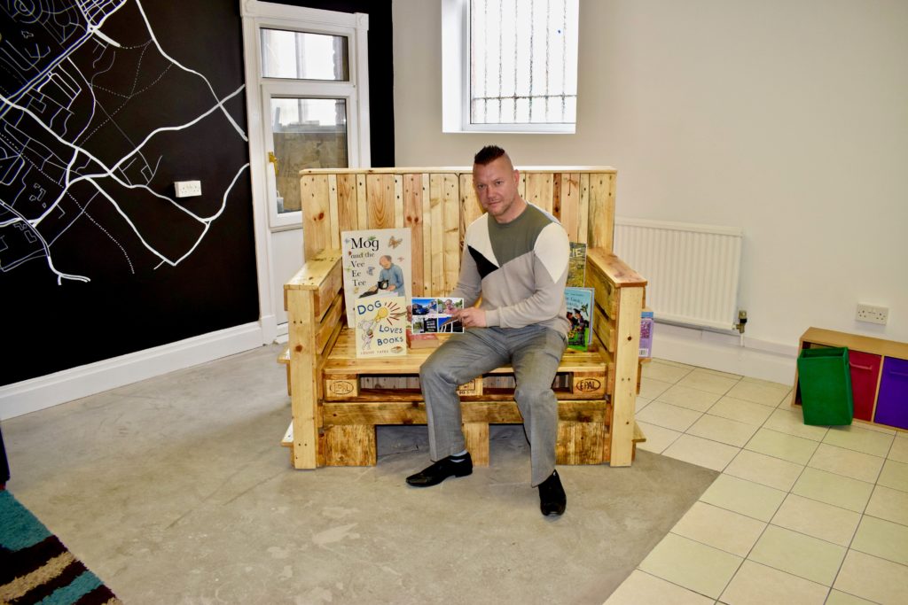 It’s a great accompaniment to the community hub space. I feel it’s a talking point because it looks so cool. It’s a load of old scaffolding and palettes, just recycled. People drop books off, share books, it’s bringing that unity together.