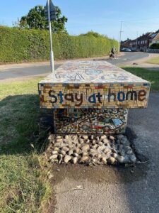 We decided that each bench would have a theme and that people could do anything they liked within those parameters. Our starting point was place, people and animals and in the end we settled on nature for one bench and emergency vehicles for the other. We finished the nature bench before lockdown but the second bench took on new meaning during COVID-19 – it now includes an acknowledgement of the NHS and frontline staff who have worked so hard during the pandemic.