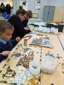 We also held sessions in the local sheltered accommodation where older residents were shown how to make mosaics – they loved working on this project and really got into the spirit of it. Its also meant that we’ve had nearly every generation of the community come together on this project which is fantastic.
