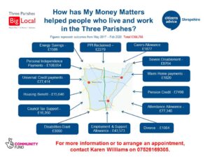 Our Big Local area, Three Parishes, is in a rural part of Shropshire and lots of services are at least a bus ride away, including the nearest Citizens Advice Bureau. So, the partnership recognised the need to address this and set up the My Money Matters project – which all happened before I joined.