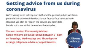 Interestingly, Citizens Advice Shropshire are planning to continue as much of their support as possible by phone and online after the pandemic, so lots of these changes are here to stay. We’re still going to give people the option of meeting Karen in person when we can, safely do so and will need to find a building with suitable accessibility to fit everyone’s needs.