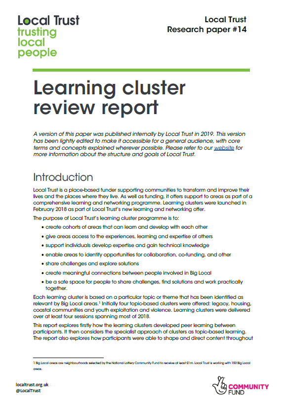 A research paper reviewing the role of learning clusters in supporting Big Local areas.