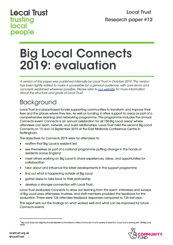 This briefing is part of our Local Trust research papers series, originally shared internally with staff, and presents findings from the evaluation of our 2019 Connects event.