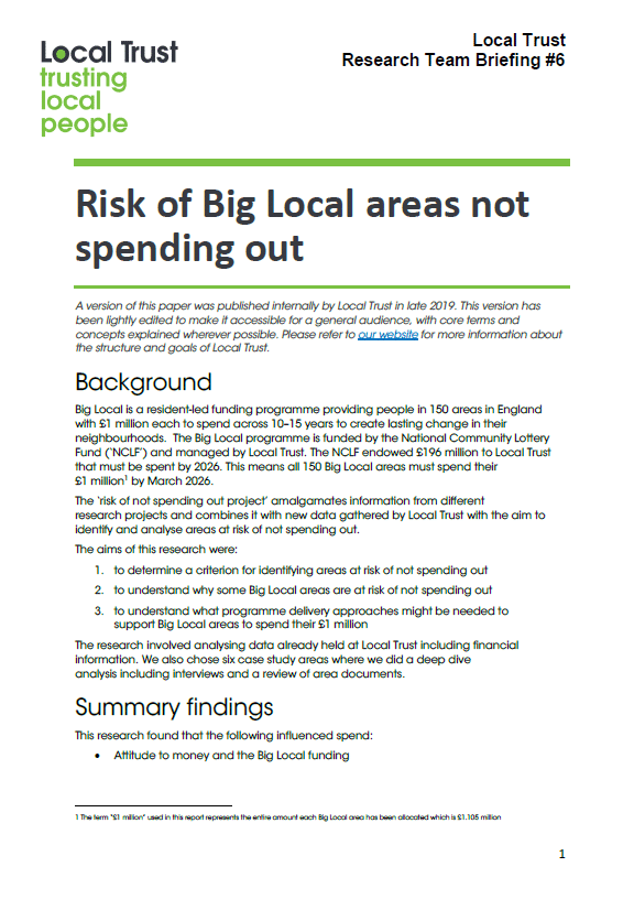 A research paper exploring why some Big Local areas are at risk of not spending all their funding.