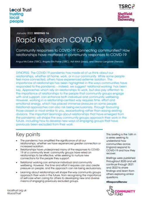 This briefing is part of a long-term research project exploring Community responses to COVID- 19. Read the blog that accompanies briefing 16 here.