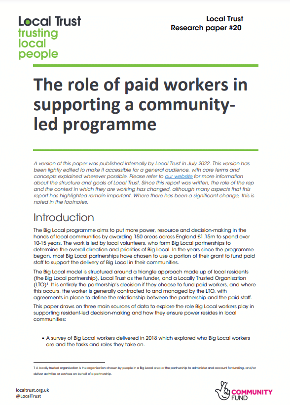 The Big Local programme aims to put more power, resource and decision-making in the hands of local communities. Most Big Local partnerships have chosen to hire paid staff, who support the delivery of Big Local in a huge variety of different ways.