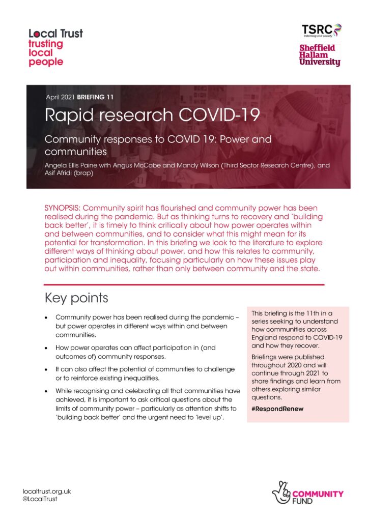 This briefing is the latest in a research series uncovering how communities have been responding to the pandemic and which factors have shaped their response. Find out more.