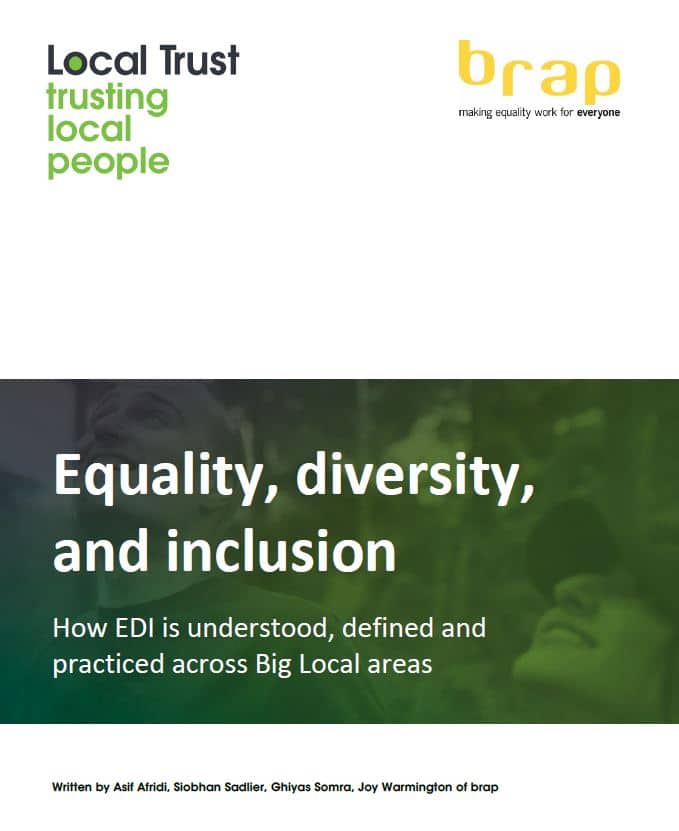 This research report is an independent deep dive, undertaken by brap, to investigate how people involved with the Big Local programme understand, define, and practice equality, diversity, and inclusion (EDI) in their work. The findings will assist Local Trust’s management of EDI within the programme and the development of EDI based support, guidance, and resources for Big Local areas.