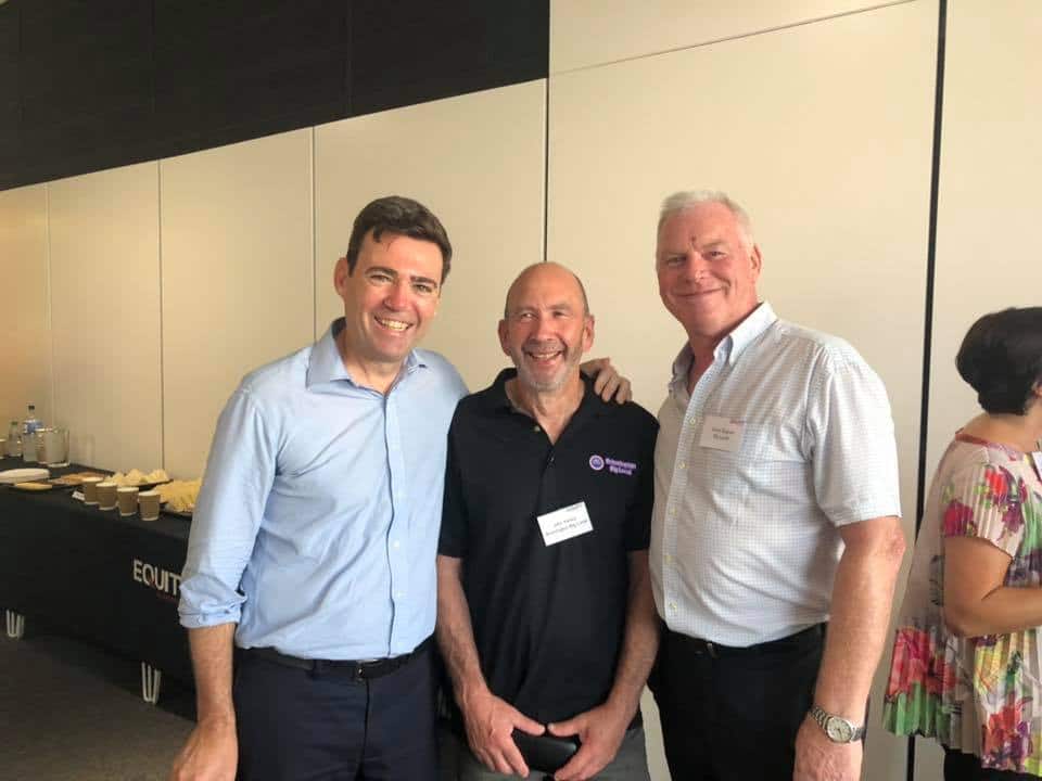 Kevin Sugrue with Andy Burnham, the Mayor of Greater Manchester, at the official opening of Brinnington’s community hub