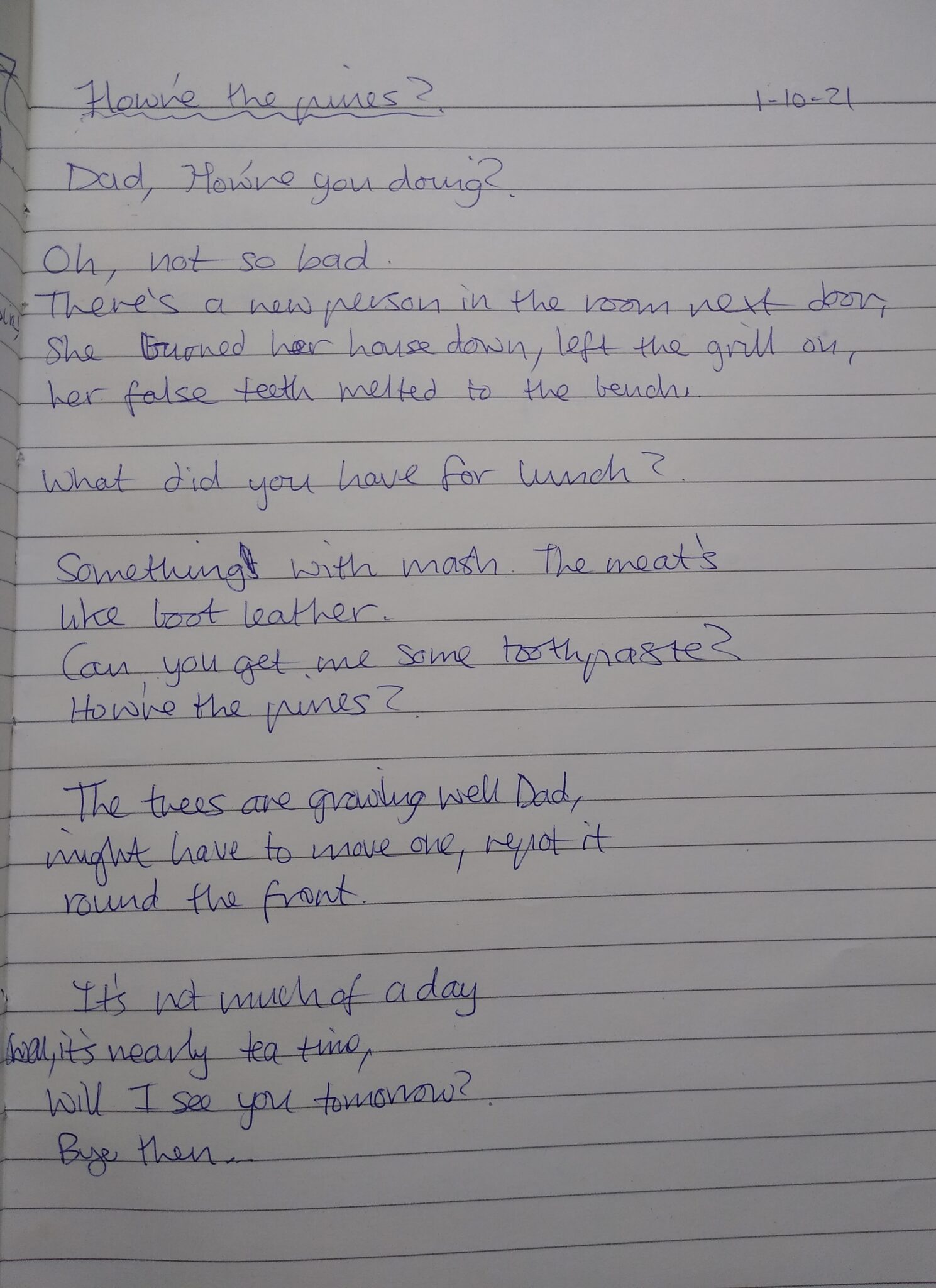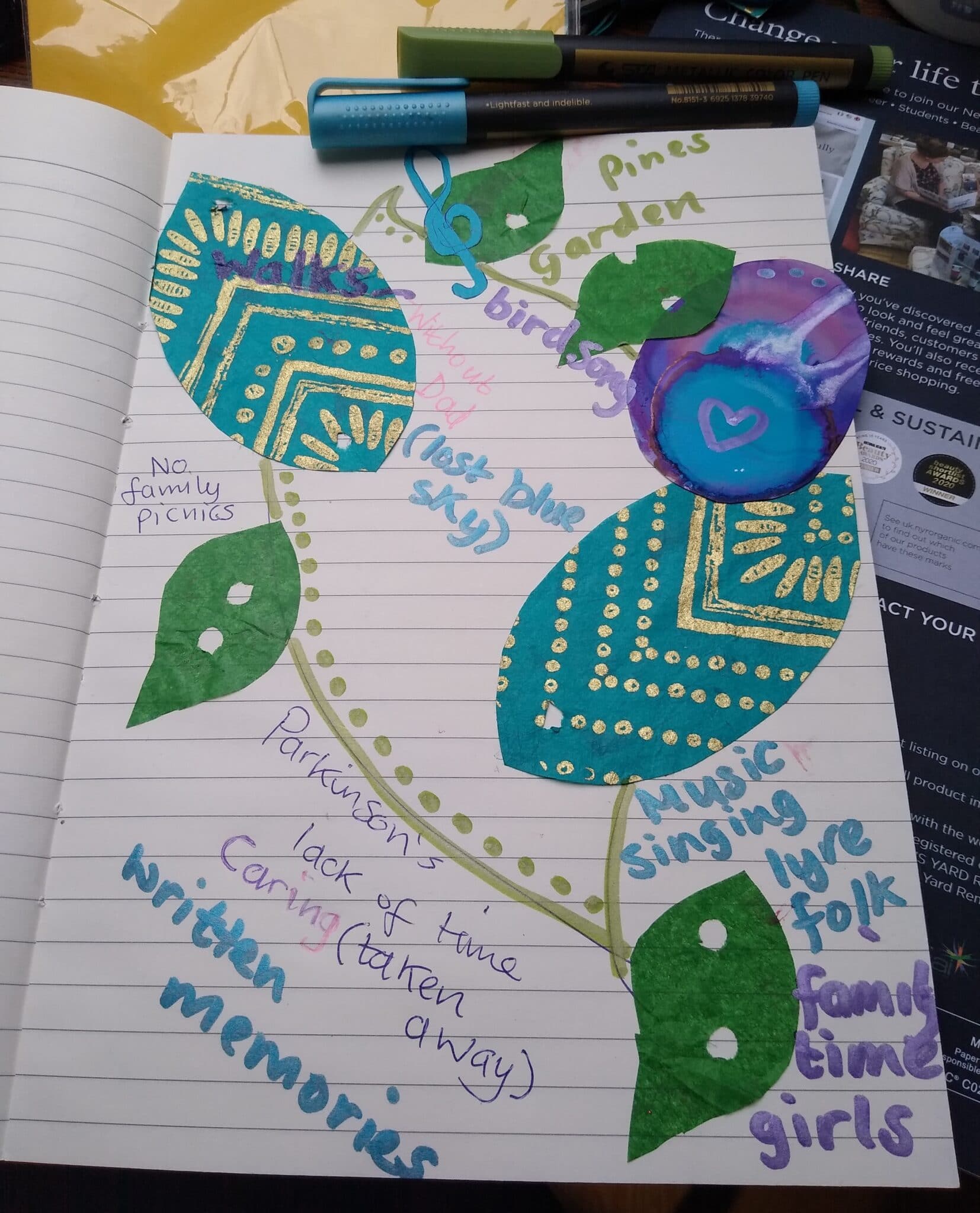 “This artwork is based on the time lost, with my Dad, in nursing care. During the lockdowns, I documented my Dad’s memories, (over garden fences/in pods and on phone calls where possible), to create a book for him, of his story.” – Tracey, Gaunless Gateway Big Local