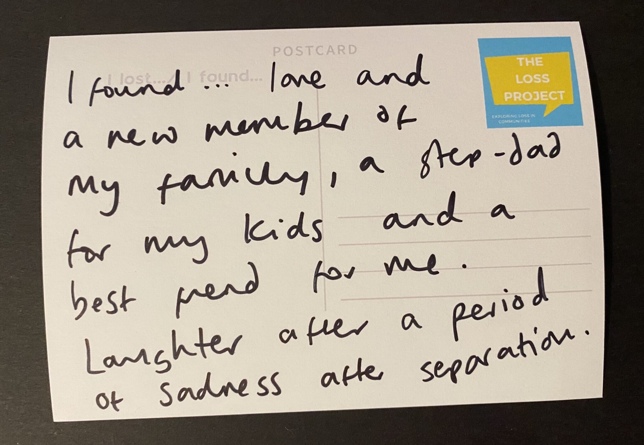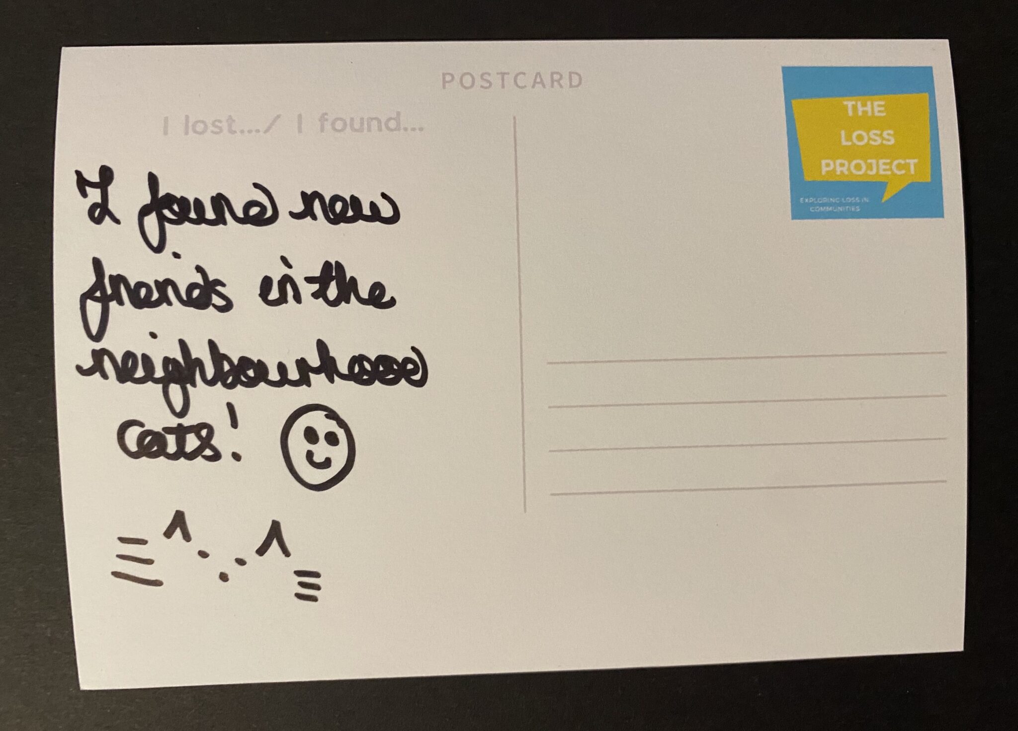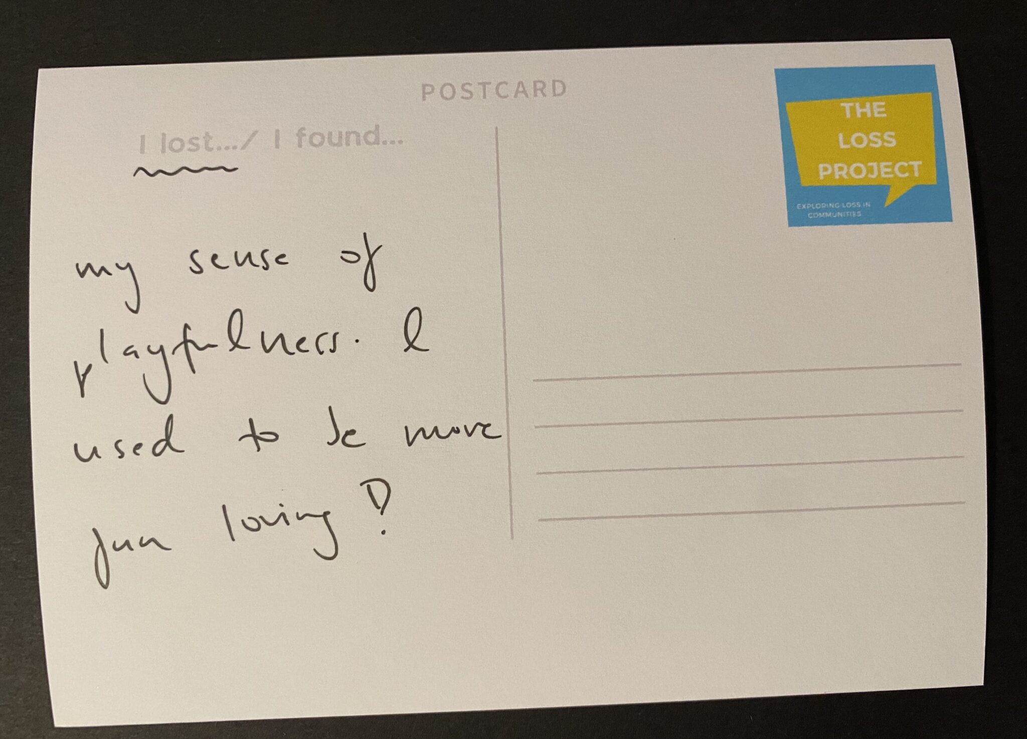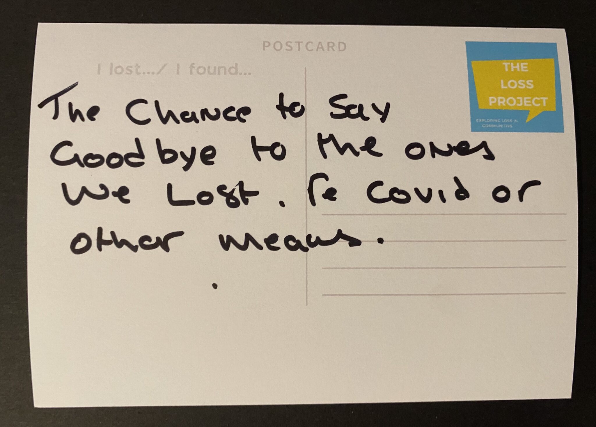 The Loss Project aims to generate a community response to loss by connecting people in local communities through their experiences of grief, loss and trauma, in whatever form they come in. Our mission is to challenge the stigma and taboo around loss, cutting through the barriers of difficult conversations and subjects that can often remain unspoken. Through training, workshops, and bespoke creative community programmes, we aim to support communities to become more open and connected. hello@thelossproject.com