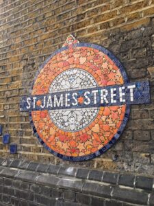 “The tiled mosaics at St James Street Station were created by the community during lockdown. Several hundred people did their own designs and Maud Milton who is a local ceramicist has created them for each stop on this stretch of the London Overground.