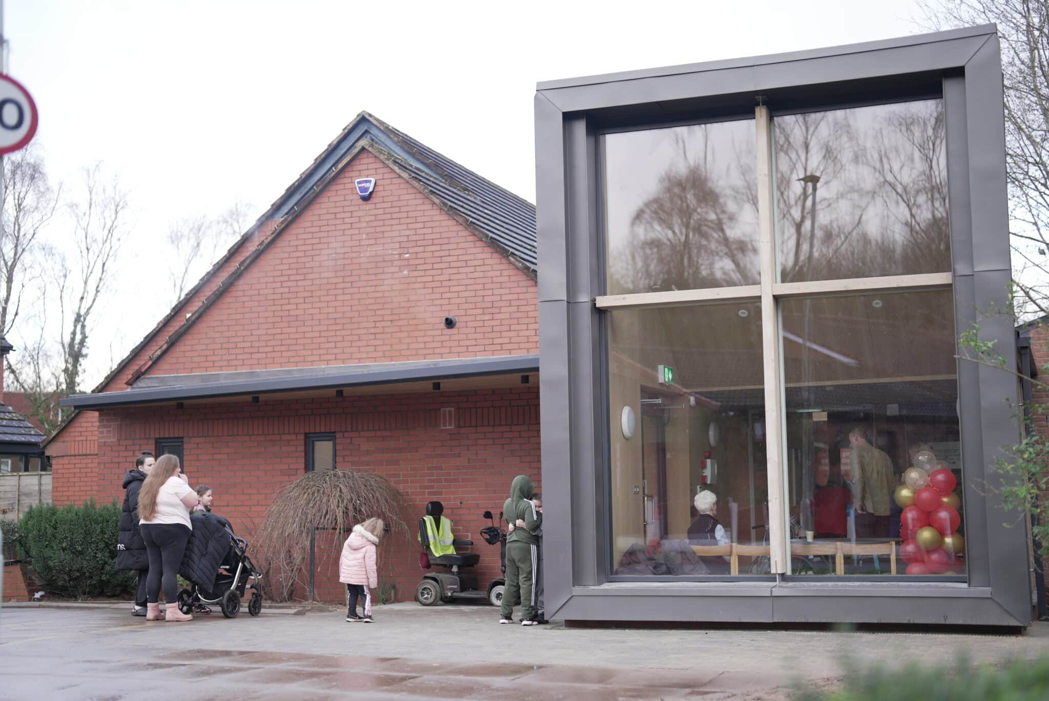 Top photo: The Windmill Hill Big Local partnership in front of their new community hub. Photos within article: Celebrating the opening of the new community hub. Credit: Local Trust/Danyelle Rolla