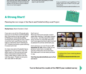 Back in March 2020, Marsh and Micklefield Big Local were about to launch their all-singing, all-dancing community consultation with a series of events to develop their new three-year plan and reinvigorate the partnership. They had identified a process for widening engagement, and worked out what everyone would contribute, all geared towards a new three-year plan to be submitted in October.