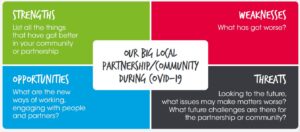 Using the example from Marsh and Micklefield, think about how your Big Local might use what you have learned during COVID-19 about remote or online communications to increase the range of people and voices involved in your area, and reflect new priorities.